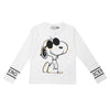 Il collo girocollo e le maniche lunghe offrono una vestibilità comoda e versatile, mentre la stampa di Snoopy dona un tocco di simpatia e stile iconico ispirato ai Peanuts.